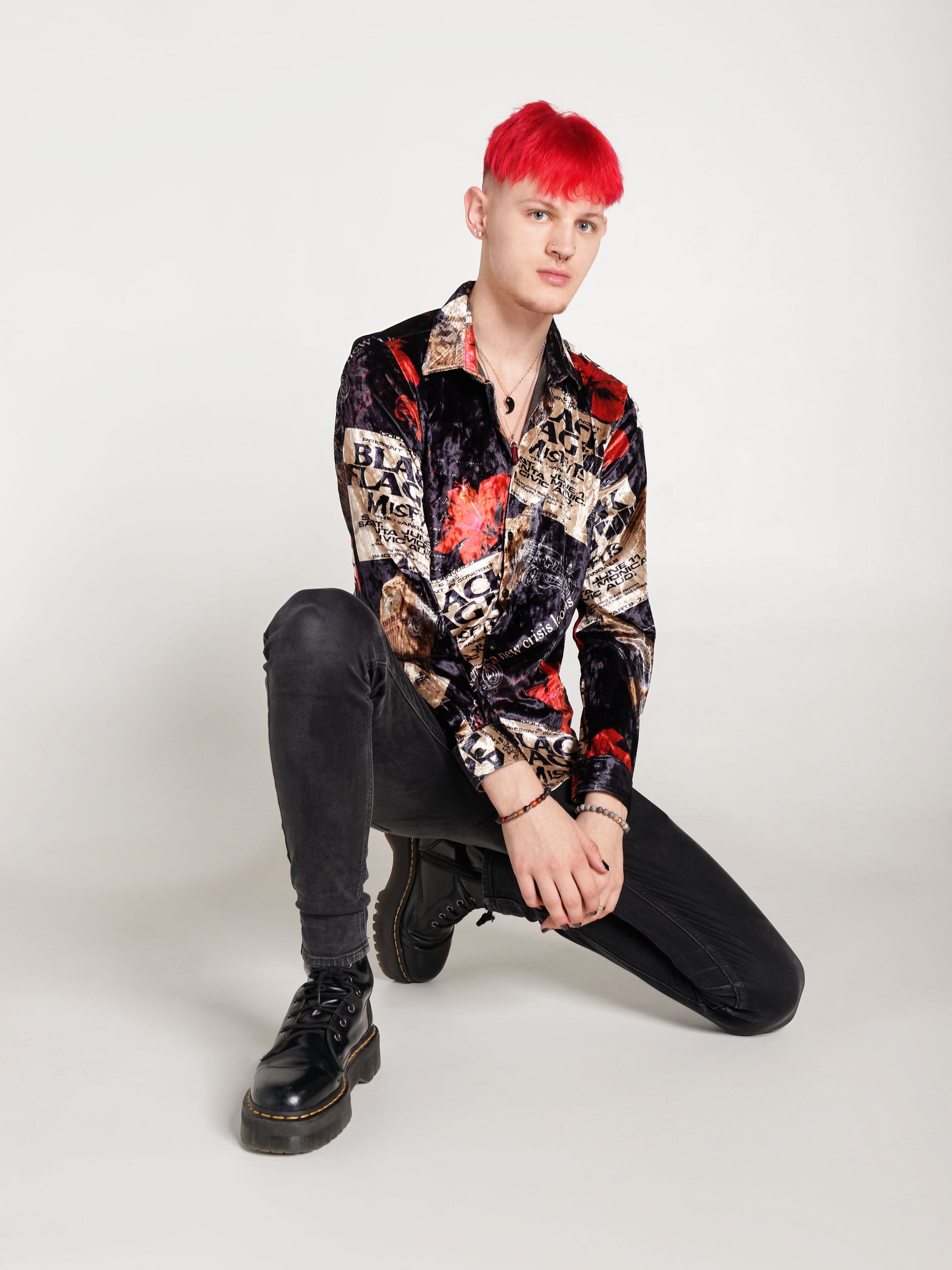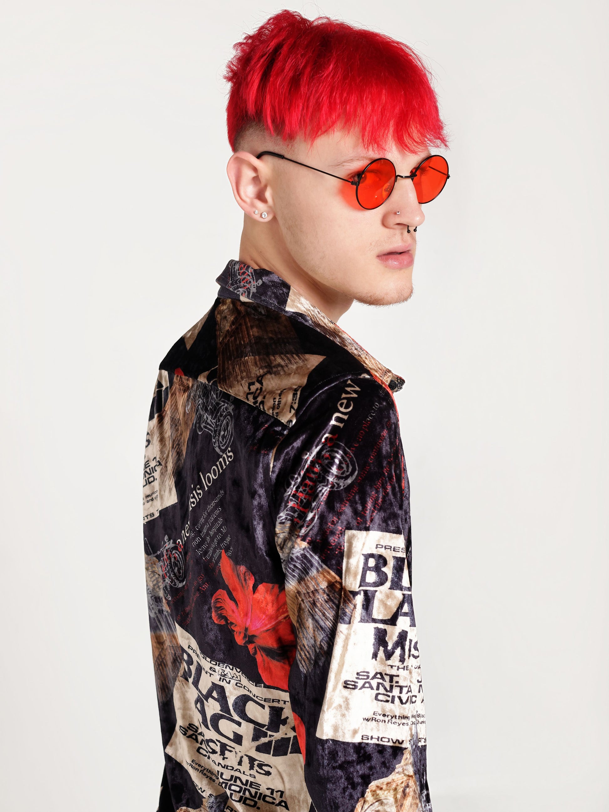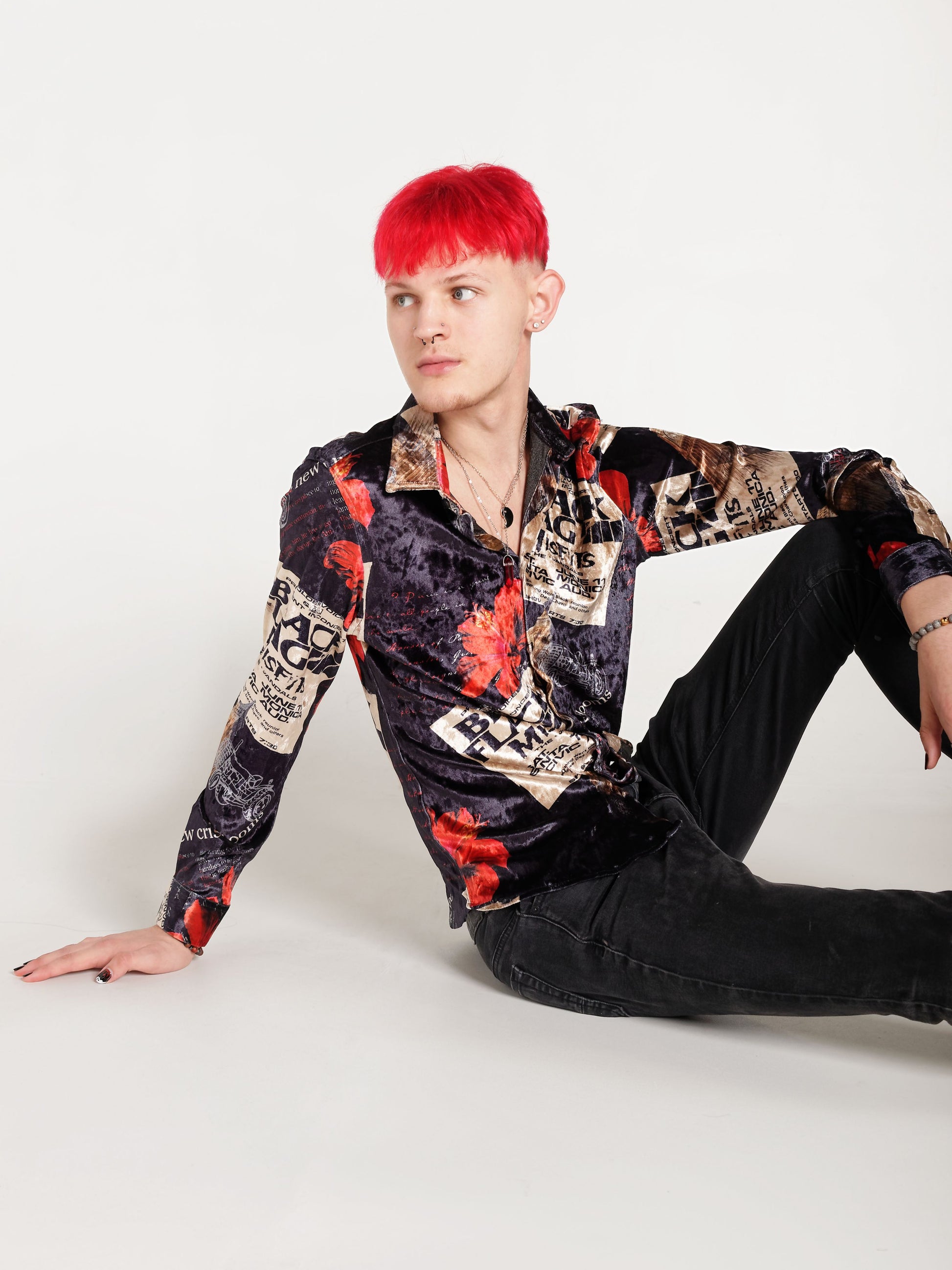 Bouton en velours vers le bas. Ajustement fidèle à la taille.